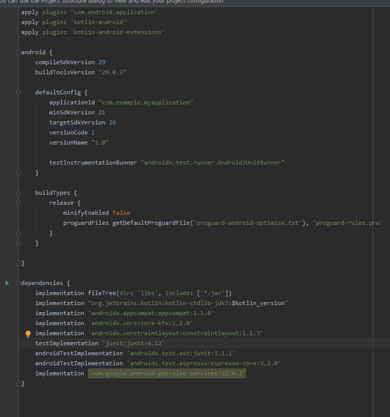 implementation 'com.google.android.gms:play-services:12.0.1'